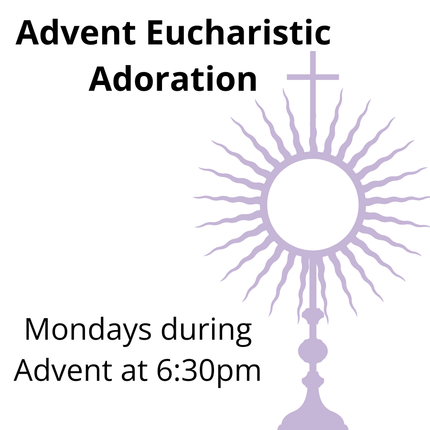 There’s going to be a lot going on at St. Mary’s this Advent season! Here’s just a few of the things to look forward to! Tuesday, December 3, 2024: 6:30 PM: Evening Prayer in the church followed by praying the Rosary. Wednesday, December 11, 2024: 6:30 PM: Lessons and Carols in the church. Sunday, December 15, 2024: 3:30 - 5:00 PM: Cocoa, Cookies, and Carols in the hall. Monday, December 16, 2024: 6:30 PM: Adoration with Praise Music. And each Thursday of Advent (December 5, 12, and 19), a Prayer Service will be celebrated at 9:00 AM. Mark your calendars, and let us journey through Advent in Hope, Love, Joy, and Peace as one family of faith, readying our hearts for the birth of our Savior.Button