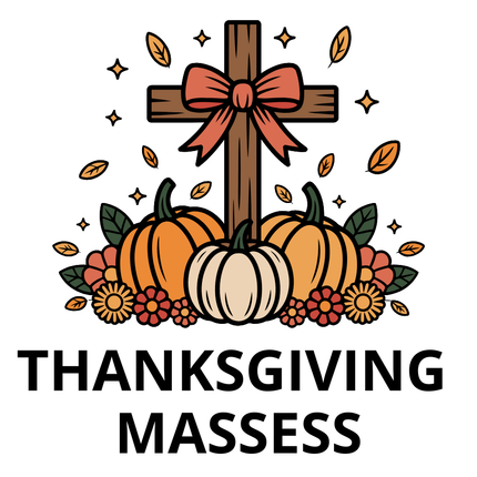 Join us on Wednesday, November 27th at 6:30pm for a special Thanksgiving Eve Mass. This is a wonderful opportunity to gather in gratitude as a faith community, offering thanks to God for His abundant blessings. Bring your family and friends as we prepare our hearts for the Thanksgiving holiday. Let us come together to give thanks and celebrate the gift of God's love. All are welcome!Button