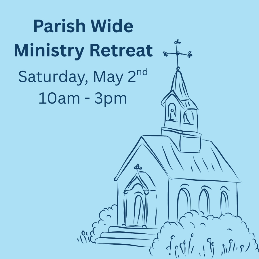 Perhaps you have considered serving in one of the parish ministries but thought "some day". Everyone in our parish family is invited to participate in a ministry retreat led by Susan Skinner of the Dominican Retreat Center on Saturday, May 2 from 10 am to 3 pm in the parish hall.